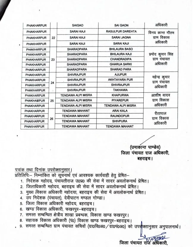 बहराइच: फखरपुर ब्लॉक के 26 वीडीओ का स्थानांतरण, अधिकारियों पर घोटाले का आरोप