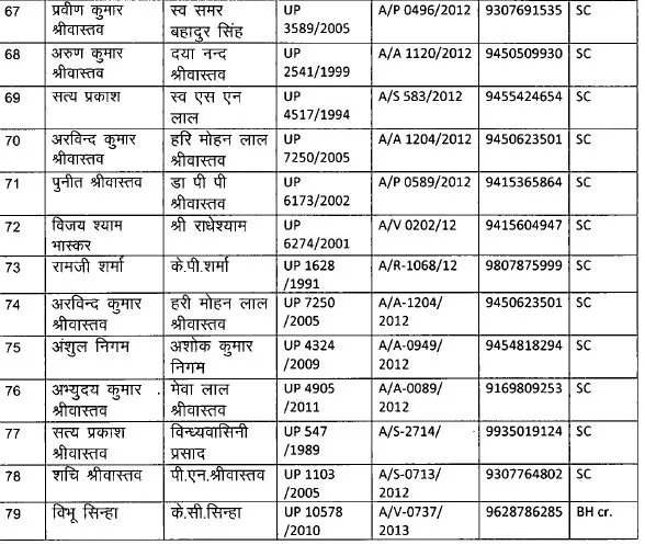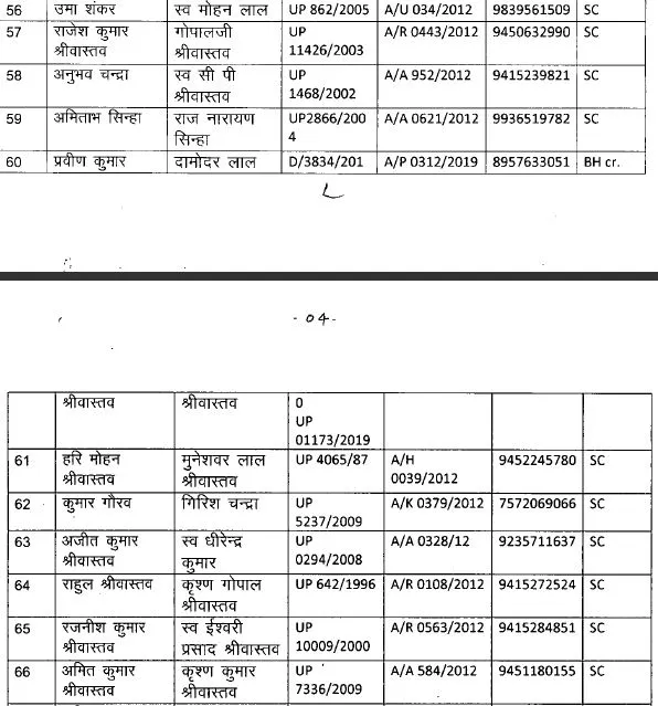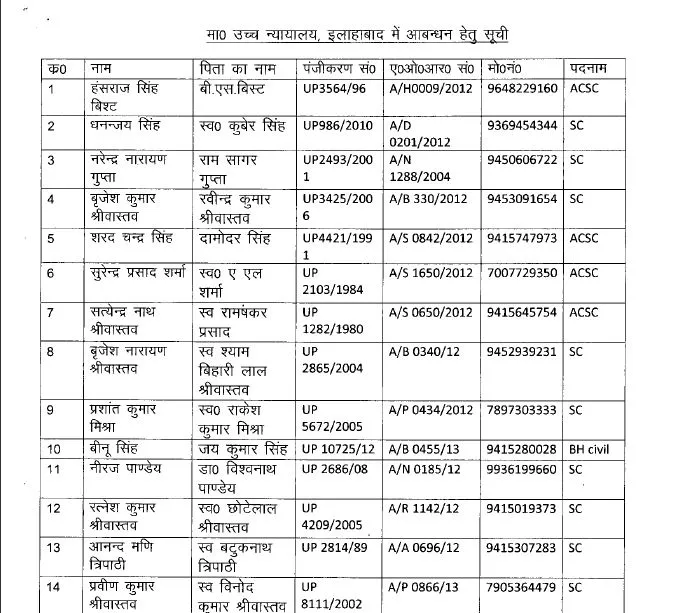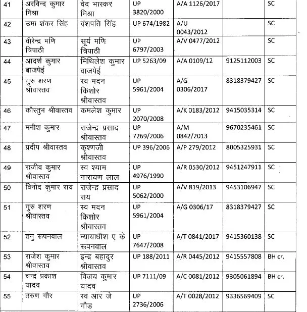 इस क्रम में प्रशान्त सिंह अटल को मुख्य स्थायी अधिवक्ता प्रथम, शैलेन्द्र कुमार सिंह को मुख्य स्थायी अधिवक्ता द्वितीय, रवि सिंह सिसोदिया को मुख्य स्थायी अधिवक्ता तृतीय, दीप शिखा को मुख्य स्थायी अधिवक्ता चतुर्थ, सुनीता सचान को मुख्य स्थायी अधिवक्ता पंचम और अजय कुमार सिंह को मुख्य स्थायी अधिवक्ता षष्टम, के नामों, पदनामों का उल्लेख है।