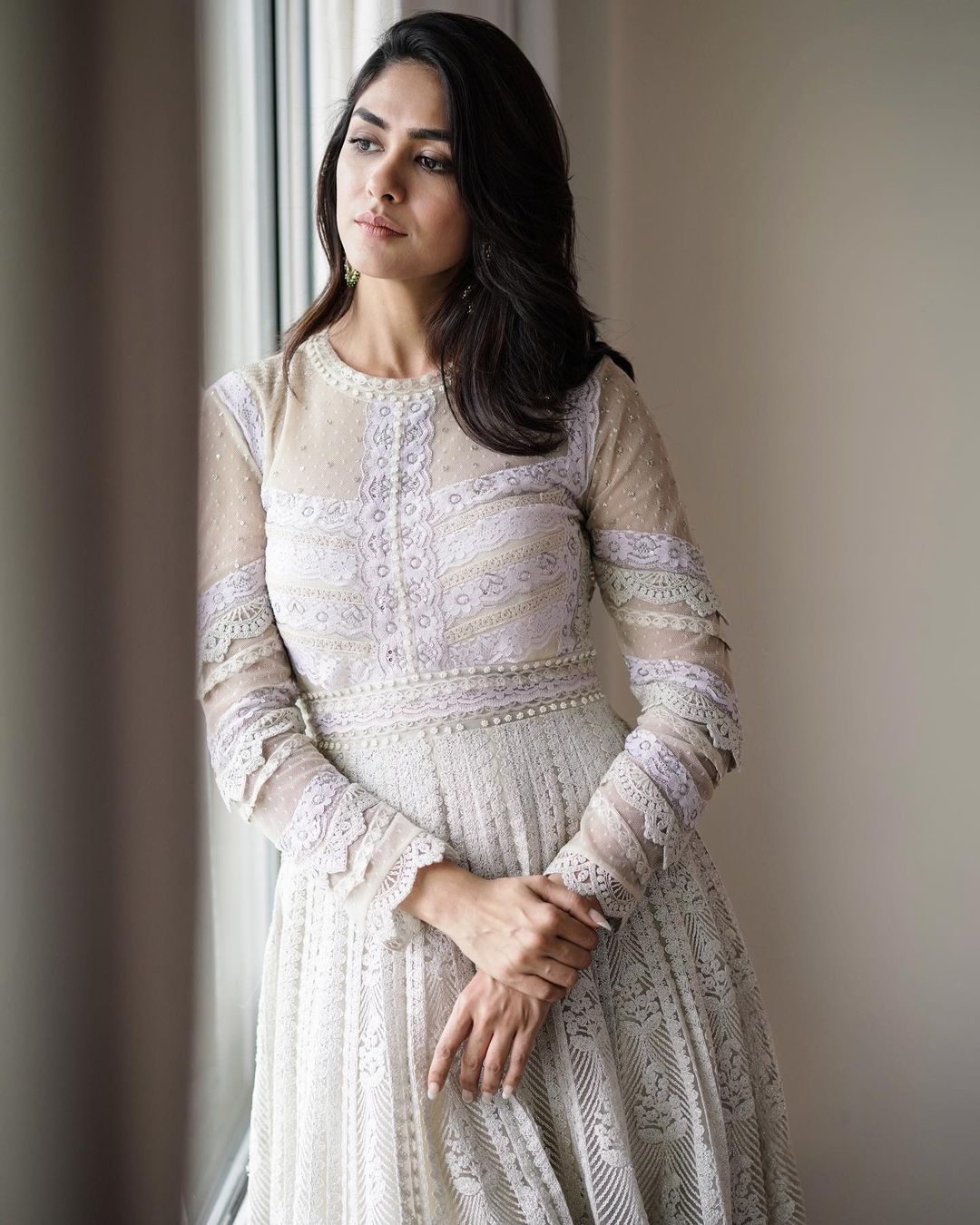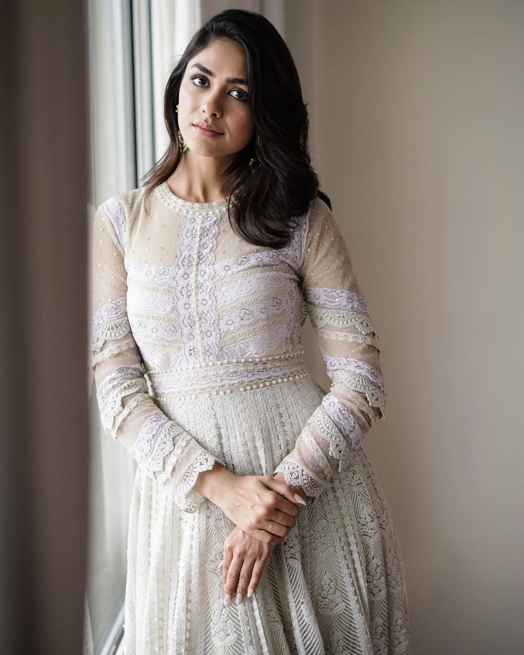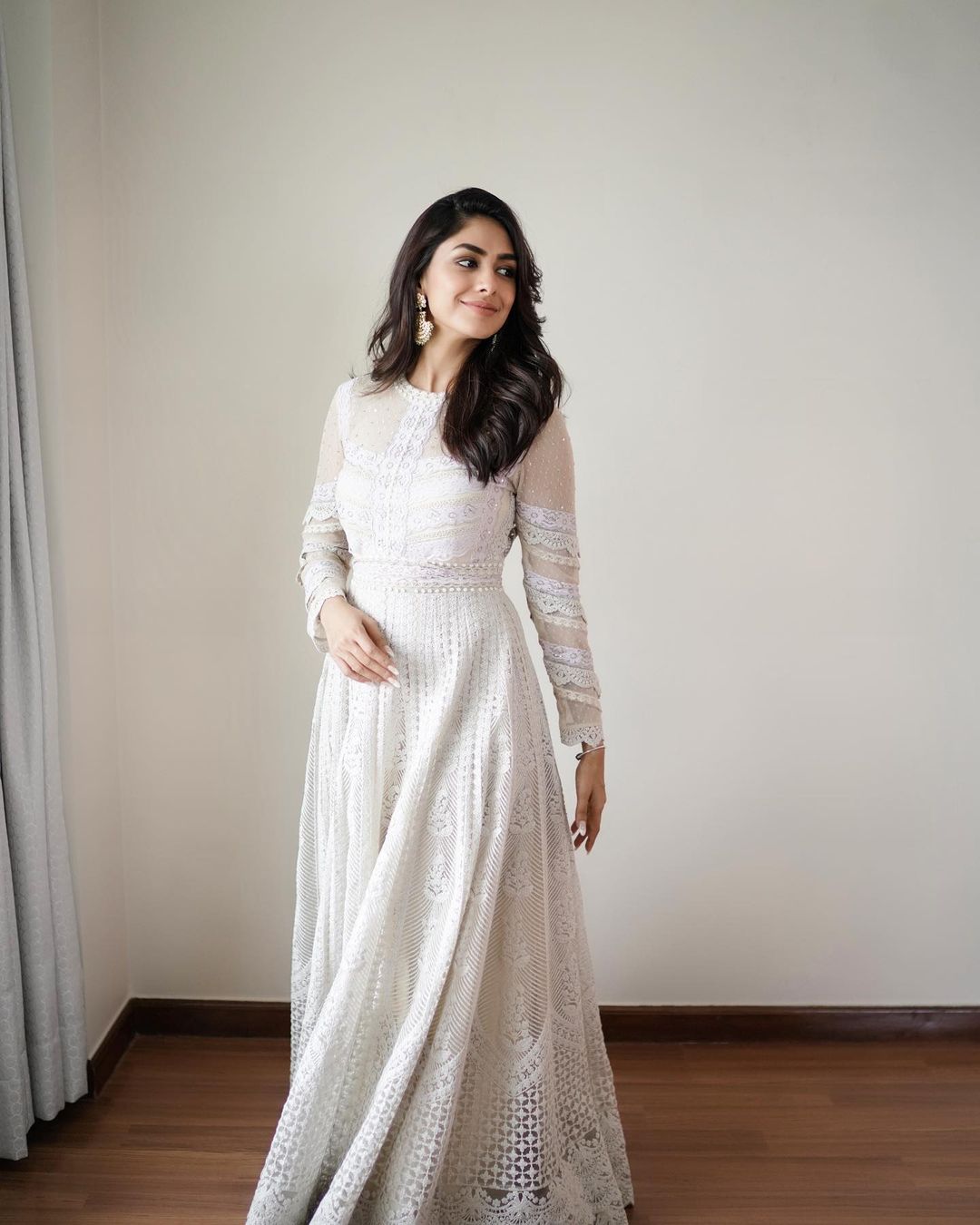 ट्रेडिशनल गाउन में मृणाल ठाकुर देसी कुड़ी का यह लुक कहर बरपा रहा है।