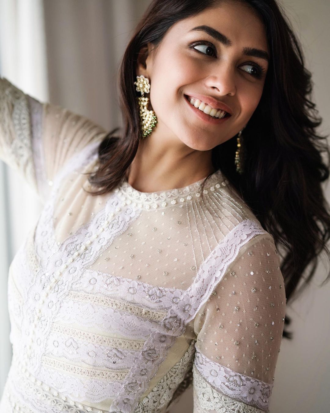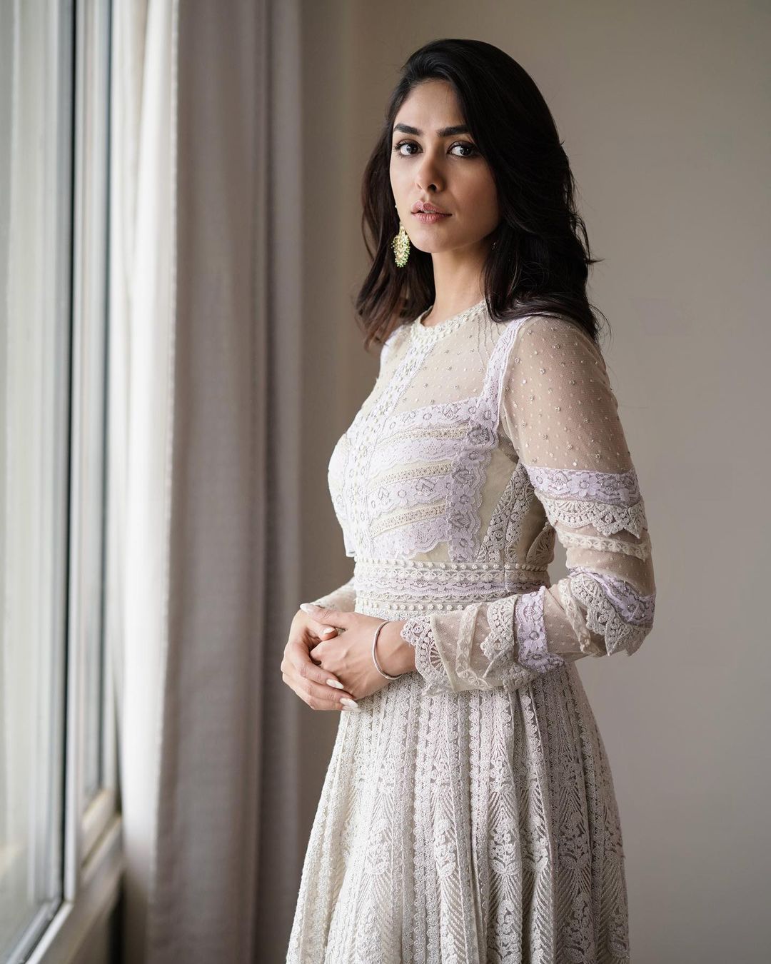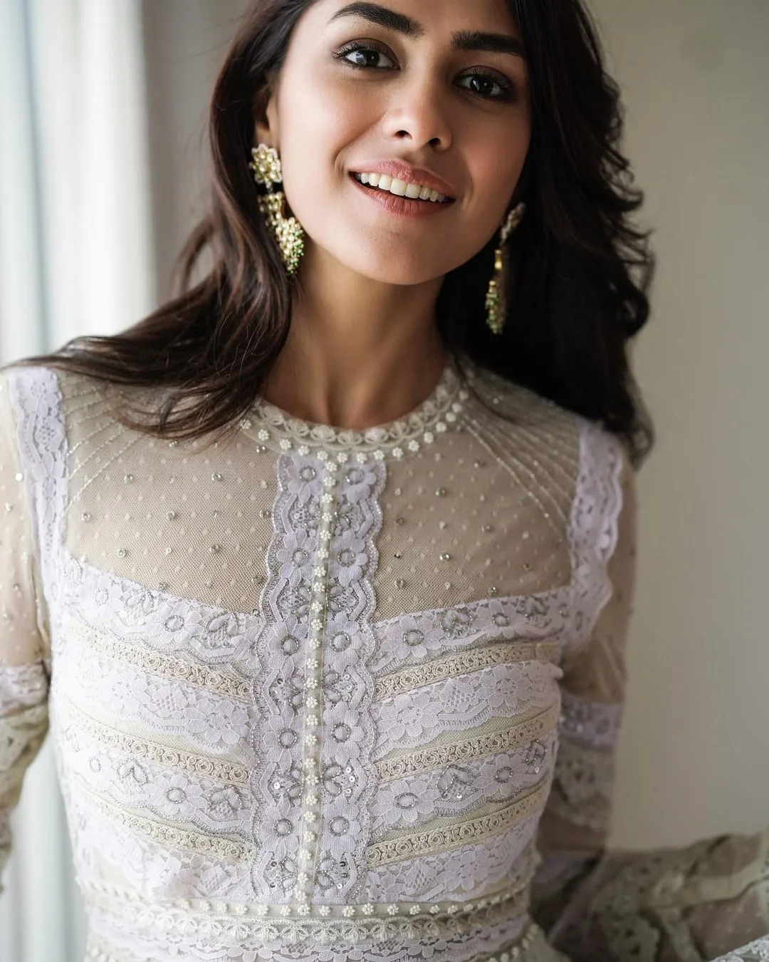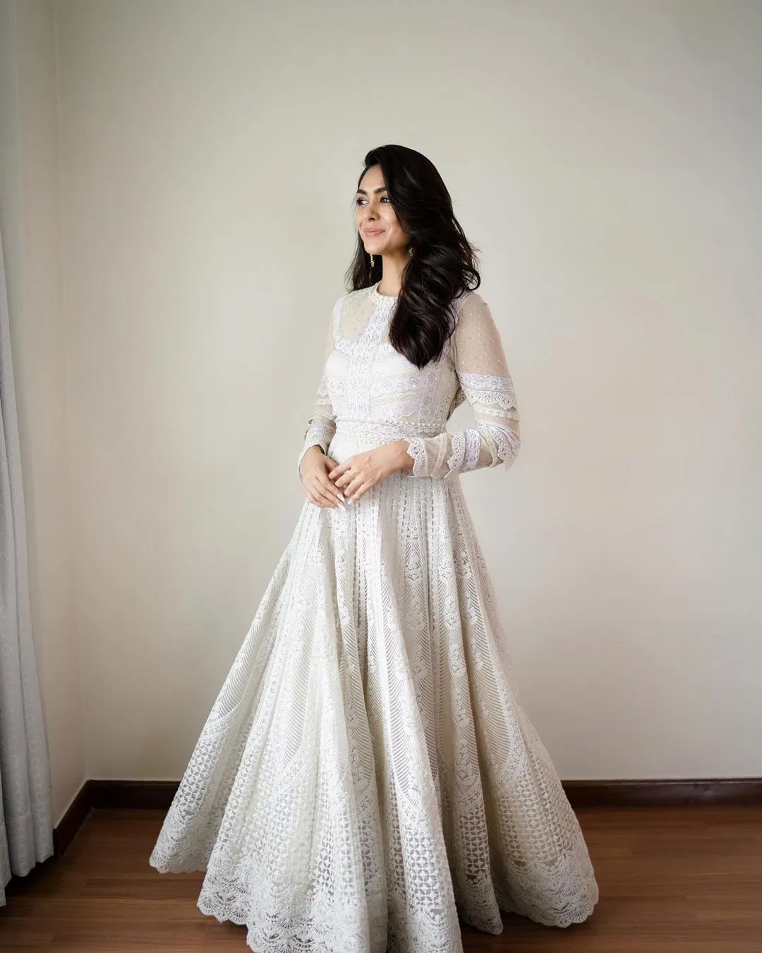 ट्रेडिशनल गाउन में मृणाल ठाकुर देसी कुड़ी का यह लुक कहर बरपा रहा है।