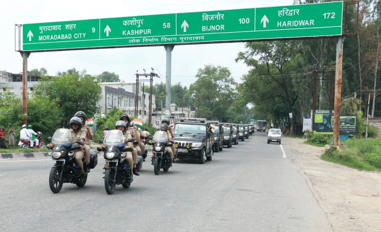 मुरादाबाद: पुलिस के पीआरवी वाहनों में किया तिरंगा पास्ट मार्च, दमकल में पानी से बनाया तिरंगा