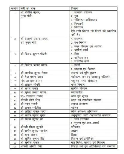 बिहार में विभागों का बंटवारा: नीतीश संभालेंगे गृह मंत्रालय, तेजस्वी को मिली ये बड़ी जिम्मेदारी, देखें लिस्ट