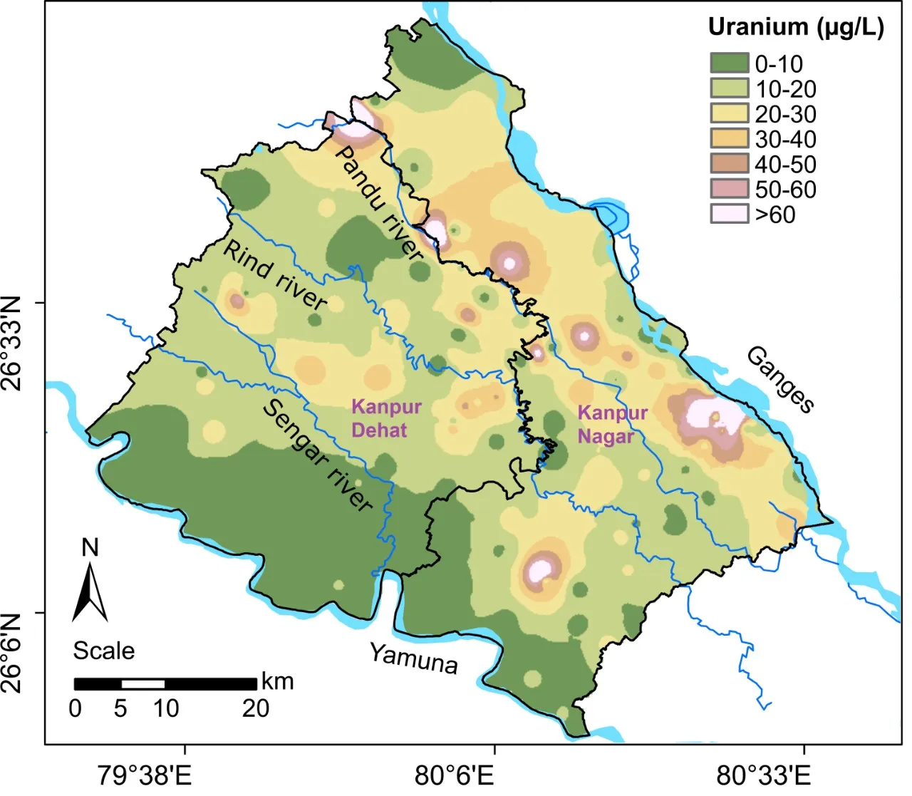 प्रो. इंद्रशेखर सेन के मुताबिक भूजल में यूरेनियम के मिलने के कई कारण हो सकते हैं। इसमें प्रमुख रूप से मानव जनित हैं, जो कि फसलों पर कीटनाशकों का छिड़काव, जीवाश्म के जलने, उद्योग से निकलने वाला कचरा आदि है। कानपुर और कानपुर देहात का क्षेत्र इंडो गैंगेटिक बेसिन के अंतर्गत आता है।