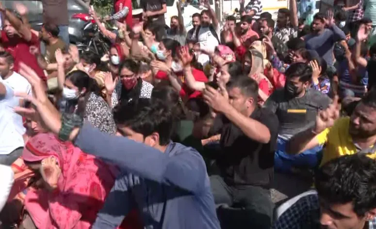 जम्मू में प्रवासी कश्मीरी पंडित कर्मचारियों ने शोपियां में आतंकवादियों द्वारा पूरन कृष्ण भट की हत्या के विरोध में लोग सड़को पर उतर आए और प्रदर्शन कर रहे हैं।