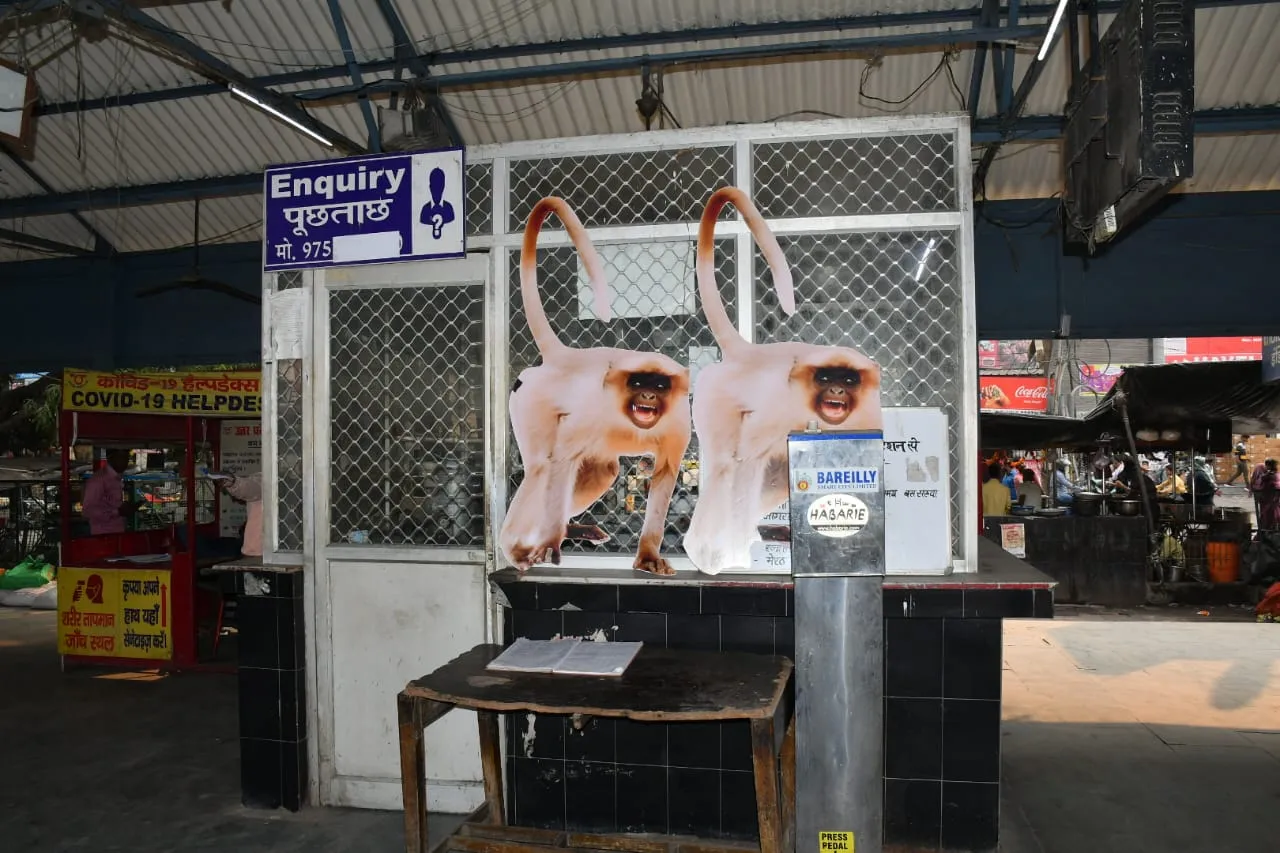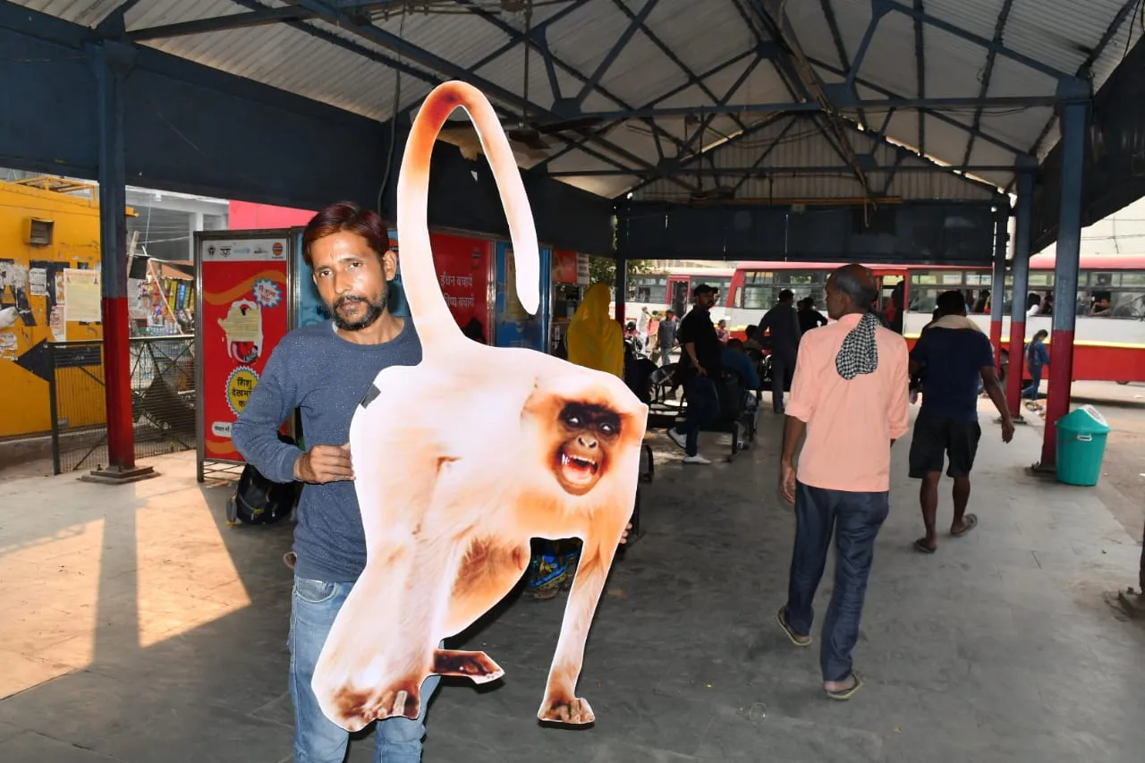 बरेली: पुराने रोडवेज पर बंदरों का आतंक रोकने के लिए लगाए गए लंगूर के कटआउट