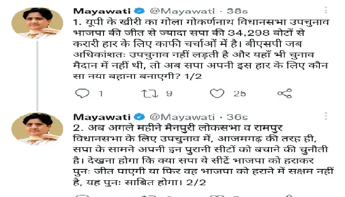 गोला गोकर्णनाथ विधानसभा उपचुनाव: सपा की हार पर बसपा सुप्रीमो ने ट्वीट कसा तंज