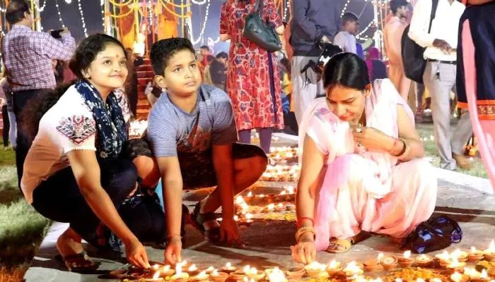 लखनऊ: दो लाख दीपों से जगमगाया मनकामेश्वर घाट, आदि गंगा गोमती की हुई भव्य आरती