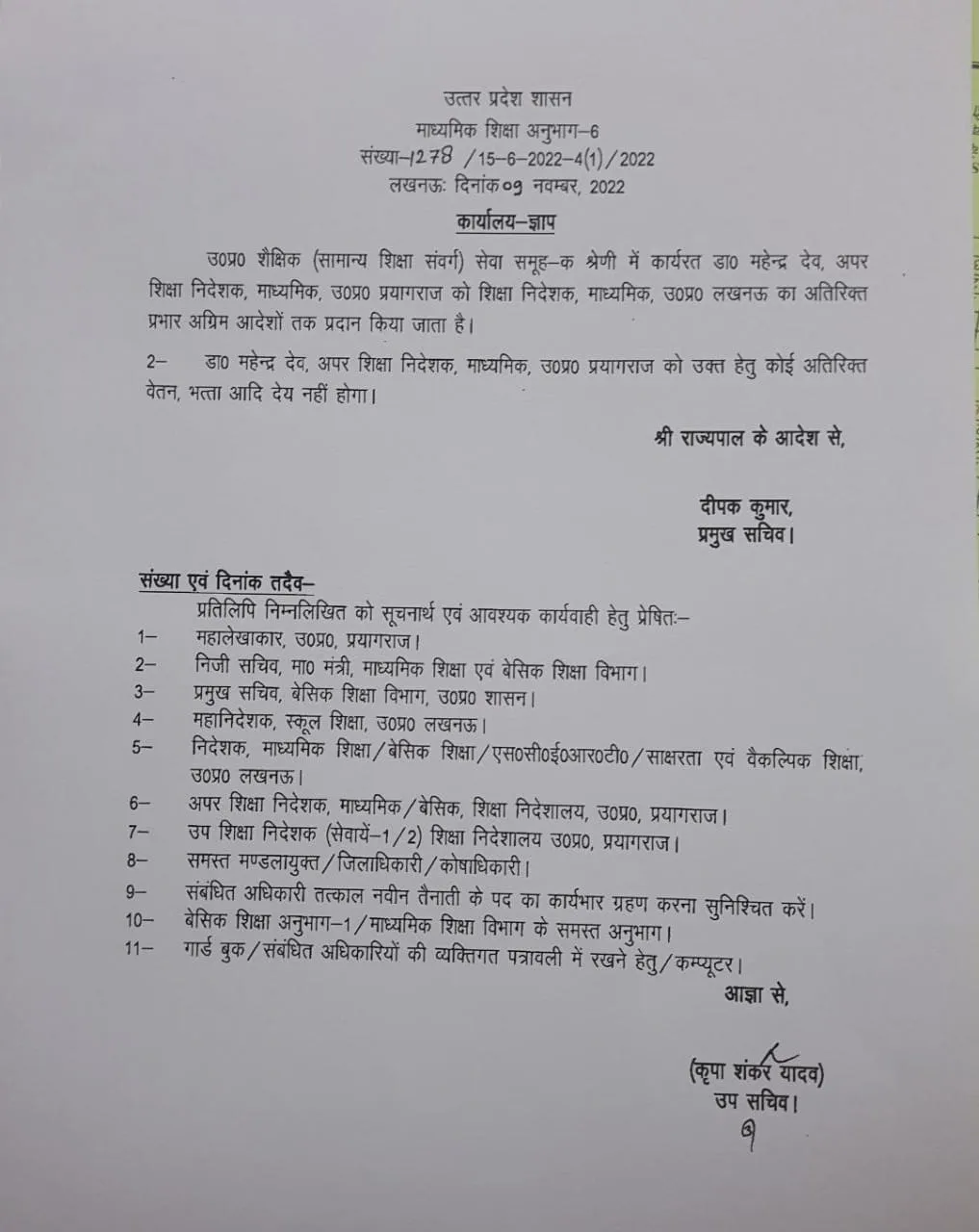 लखनऊ: महेंद्र देव बने यूपी के नए माध्यमिक शिक्षा निदेशक