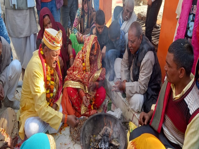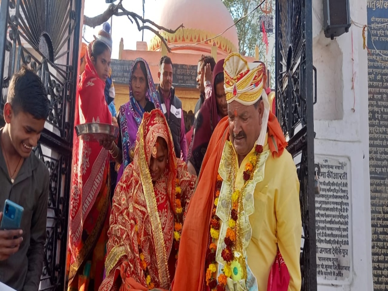सुबेहा थाना क्षेत्र के चौधरी का पुरवा मजरे जमीन हुसैनाबाद के 65 वर्षीय नकछेद यादव ने छत्तीसगढ़ के रांची से नंदनी यादव जिनकी उम्र 24 वर्ष है। रविवार को दोनों ने क्षेत्र के संभ्रांत व्यक्तियों के साथ अयोध्या जनपद के रुदौली विधानसभा में स्थित मां कामाख्या मंदिर में पहुंचकर विधि विधान के साथ सात फेरे लिए। इस दौरान वहां पर इस अनोखी शादी को देखने के लिए सैकड़ों लोगों का मजमा भी जुटा रहा।