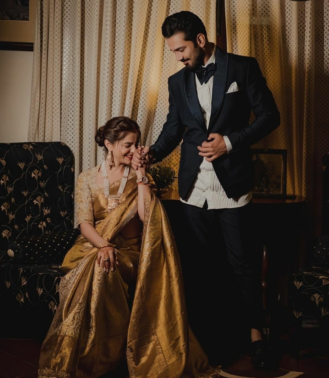 रुबिना के मेकअप की बात करे तो उन्होंने लाइट मेकअप, रेड कलर की लिपस्टिक के साथ खूबसूरत हेयरस्टाइल बनाया है, जो फैंस को काफी पसंद आ रहा हैं। साथ में उनके पति अभिनव के लुक की बात करें तो वह भी ब्लू और वाइट आउटफिट में काफी हैंडसम लग रहे हैं। दोनों एक साथ परफेक्ट लग रहे हैं।