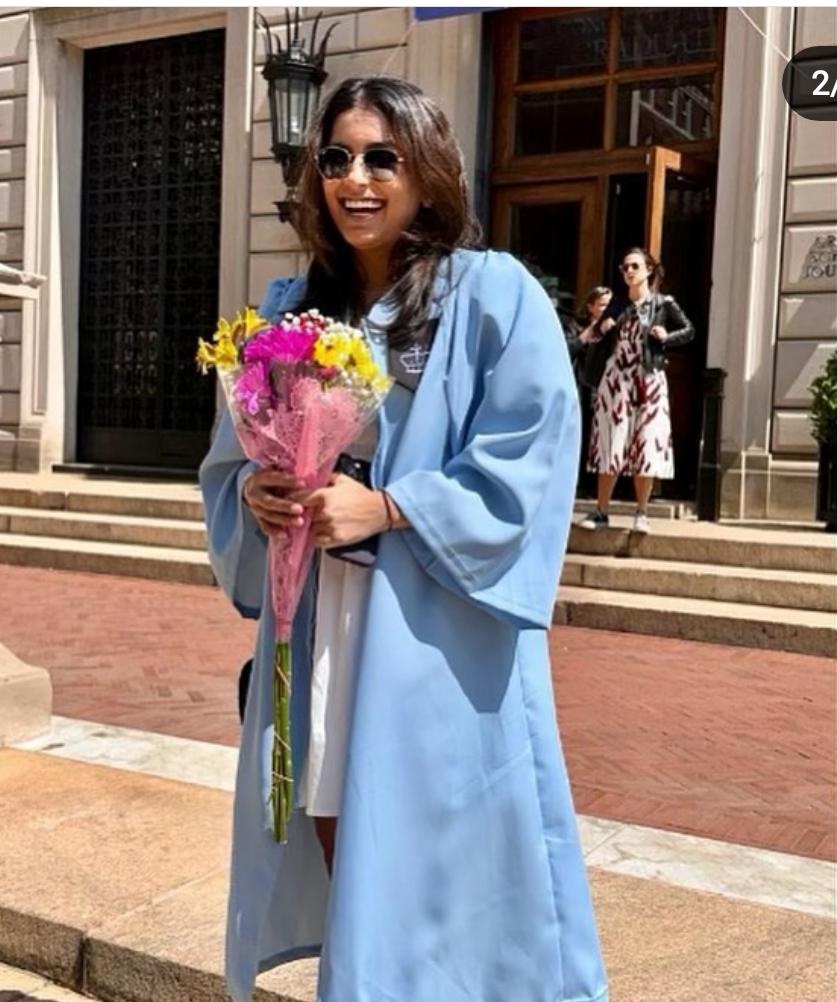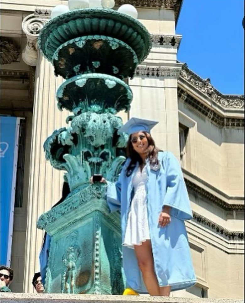 मुंबई। बॉलीवुड अभिनेत्री जूही चावला ने अपनी बेटी जाह्नवी मेहता की ग्रेजुएशन-सेरेमनी की फोटो सोशल मीडिया पर शेयर की है। जूही चावला की बेटी जाह्नवी मेहता कोलंबिया यूनिवर्सिटी से ग्रेजुएट हो गई हैं।