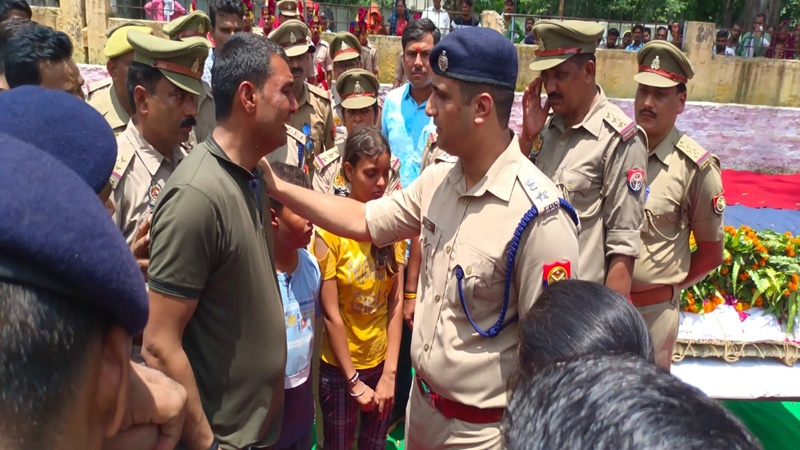 सोमवार को पोस्टमार्टम के बाद शव को पुलिस लाइन लाया गया। जहां डीएम अपूर्वा दुबे, सिद्धार्थ शंकर मीना, एएसपी शशि शेखर, सीओ सफीपुर व सिटी सहित एसडीएम सफीपुर सहित कई थानेदारों व पुलिस कर्मियों ने श्रद्धांजलि अर्पित की। पुलिस की टुकड़ी ने शस्त्र झुका कर सलामी दी। इसके बाद एसपी एएसपी सहित अन्य अफसरों ने पार्थिव शरीर को कंधा देकर पुलिस वाहन तक ले गए। पुलिस वाहन से शव को पैतृक गांव भेजा गया। एसपी ने परिजनों को आर्थिक सहायता के साथ हर संभव मदद का भरोसा दिया।