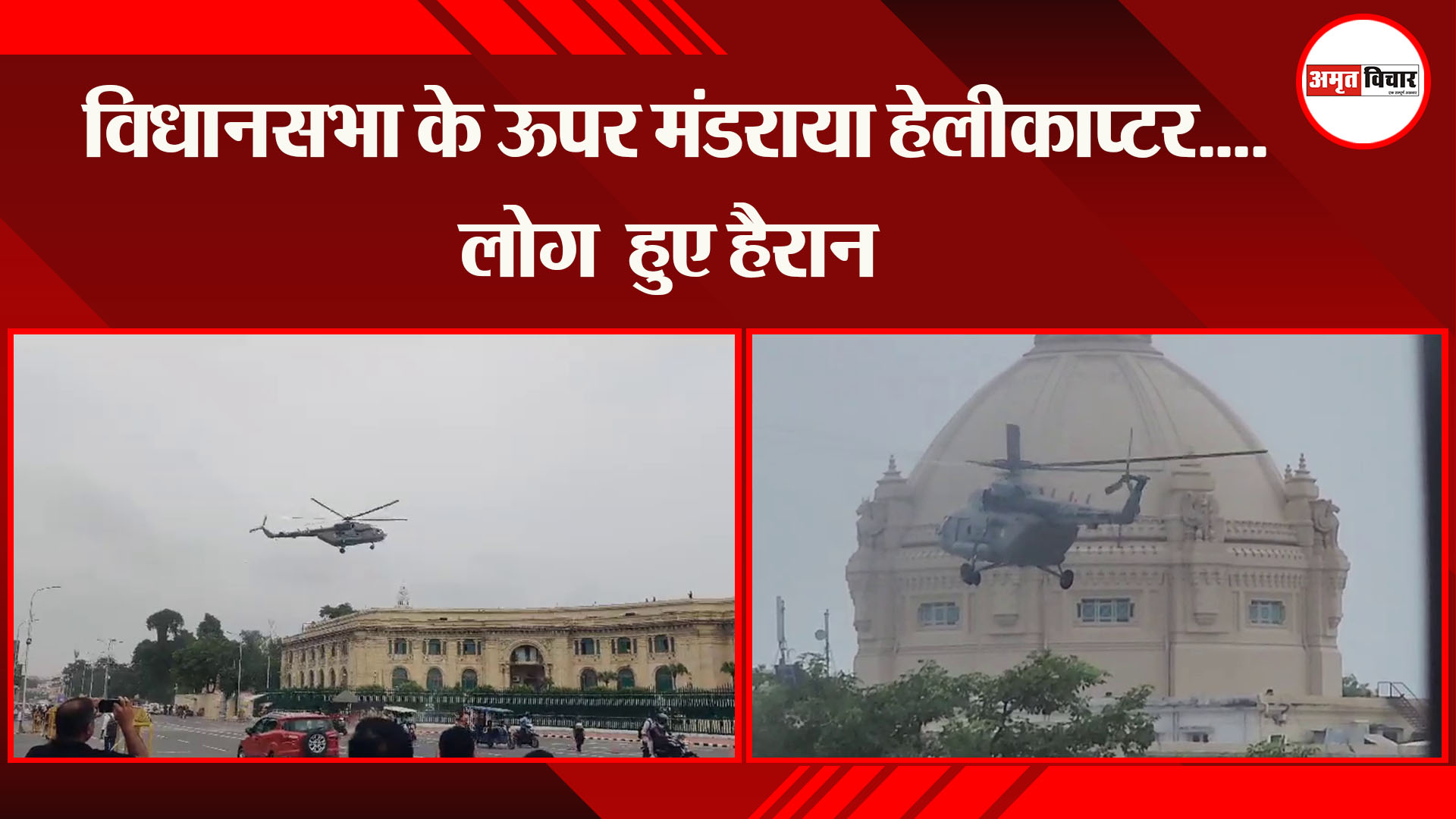 लखनऊ: विधानसभा के ऊपर मंडराया हेलीकॉप्टर.... लोग हुए हैरान