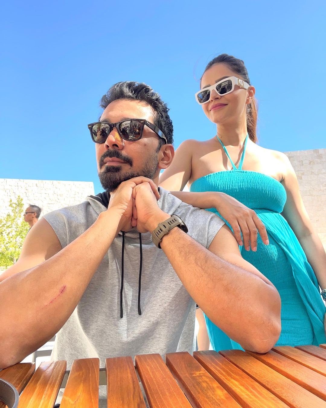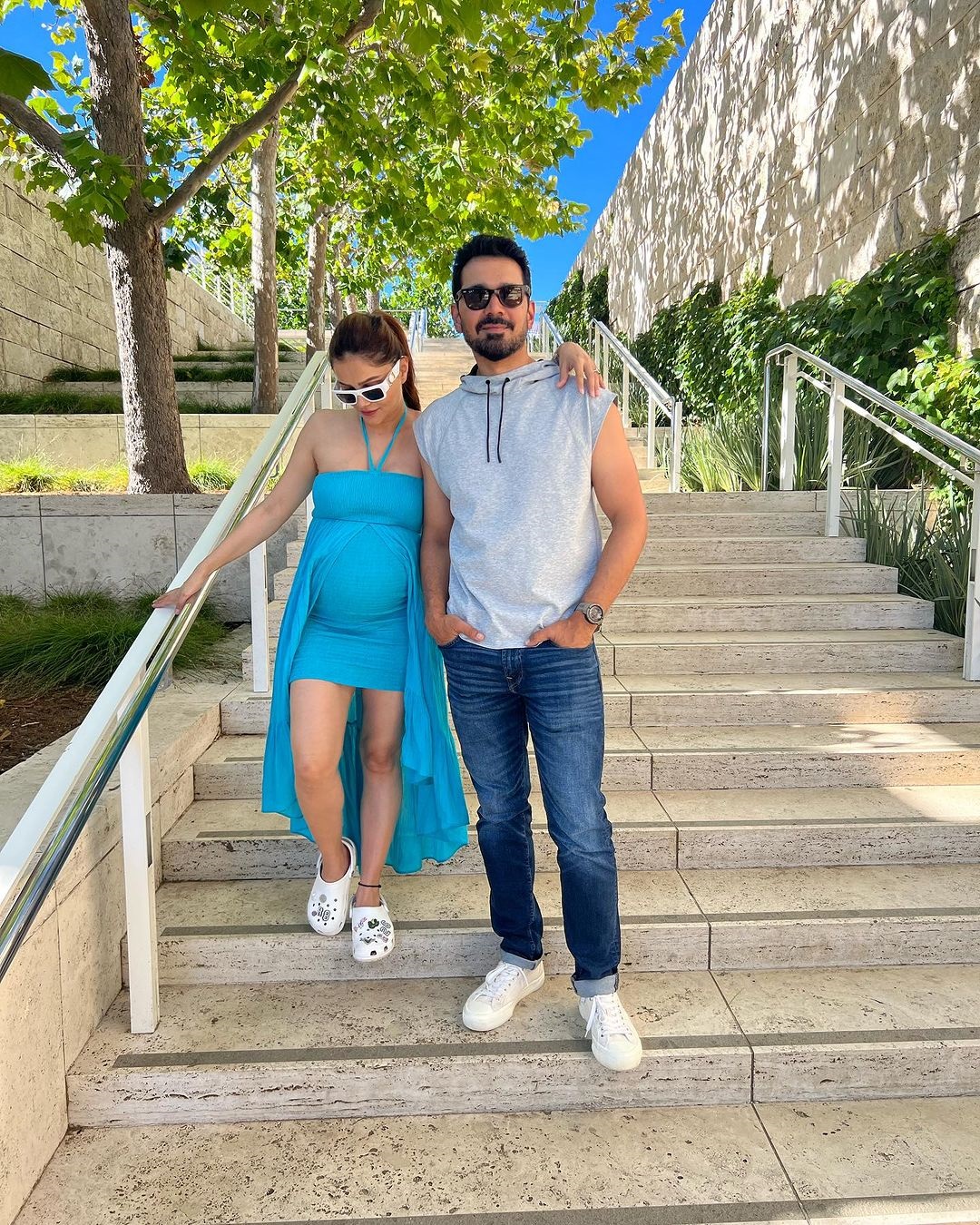 रुबिना ने टाइट शॉर्ट ड्रेस में अपना बेबी बंप फ्लॉन्ट किया है। उन्होंने पोनीटेल के साथ गॉगल्स से खुद को स्टाइल किया। ओवरऑल लुक में रुबीना गजब ढा रही हैं।