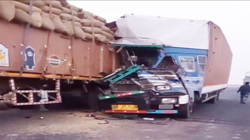 दोनों की मौत हो गई। जबकि दूसरे ट्रक संख्या यूपी 26 टी 4932 में सवार चालक माजिद अली घायल हुआ है। मृतकों के शव को पुलिस ने पोस्टमार्टम के लिए भेज दिया है। थानाध्यक्ष ने बताया कि दुर्घटना ग्रस्त वाहनों को सुबह नौ बजे तक हटवा दिया गया है। अब आवागमन सामान्य हो गया है।
