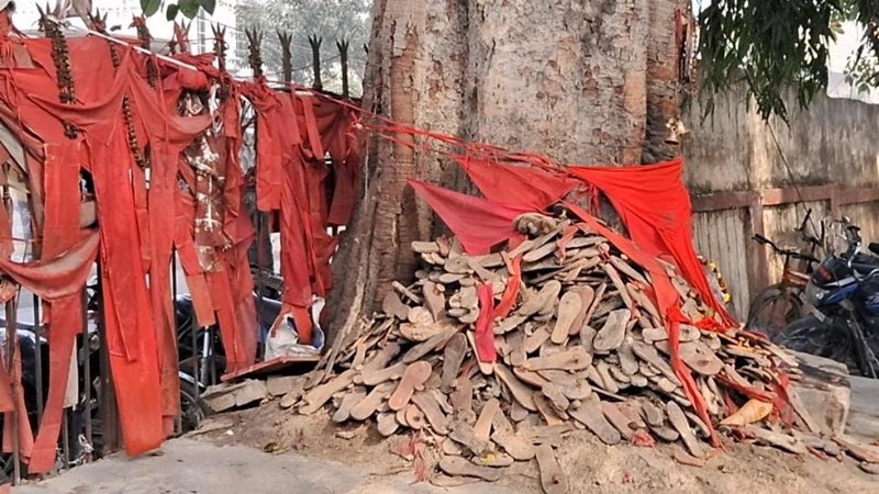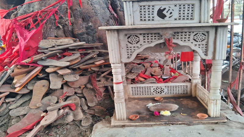 जी हां संगम नगरी में एक ऐसा मंदिर है जहां मन्नतें पूरी होने के बाद भक्त भगवान को भोग प्रसाद के रूप में चरण पादुका चढ़ाते है। यह मंदिर चिल्ड्रेन हॉस्पिटल परिसर में स्थित है तो काफी पुरानी है। बताते चले कि प्रयागराज के चिल्ड्रेन हॉस्पिटल परिसर में स्थित यह छोटा सा मंदिर विशाल पीपल के वृक्ष के नीचे स्थित है।
