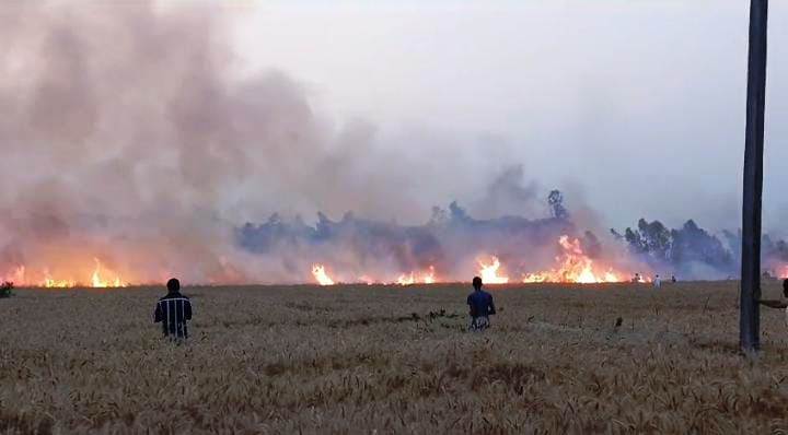 पीलीभीत: दो गांवों के खेतों में लगी आग, 20 बीघे में खड़ी गेहूं की फसल जलकर राख