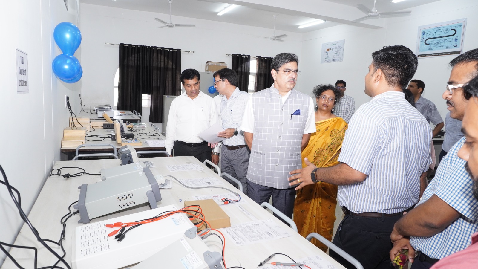 संकायाध्यक्ष प्रो. एके सिंह ने संकाय में स्थापित की गई इन अत्याधुनिक प्रयोगशालाओं के बारे में बताया कि एडवांस इलेक्ट्रानिकी डिजाइन लैब में सर्किट सिमुलेशन के लिए विशिष्ट ओरकैड डिजाइन साफ्टवेयर, डिजिटल सर्किट सिमुलेशन के लिए विवडो साफ्टवेयर एवं एफ. पीजीए हार्डवेयर बोर्ड से छात्रों को इंडस्ट्री -4.0 में प्रयोग होने वाले तकनीकी को सीखाया जा सकेगा। एनएबी एल मान्यता प्राप्त डिजिटल ऑस्कल्लोंस्कोप, आर्बिट्रेरी फंक्शन जेनरेटर, मल्टी आउटपुट पावर सप्लाई, बेंच टॉप मल्टीमीटर, एलसीआर मीटर से छात्रों को जानकारी मिलेगी।