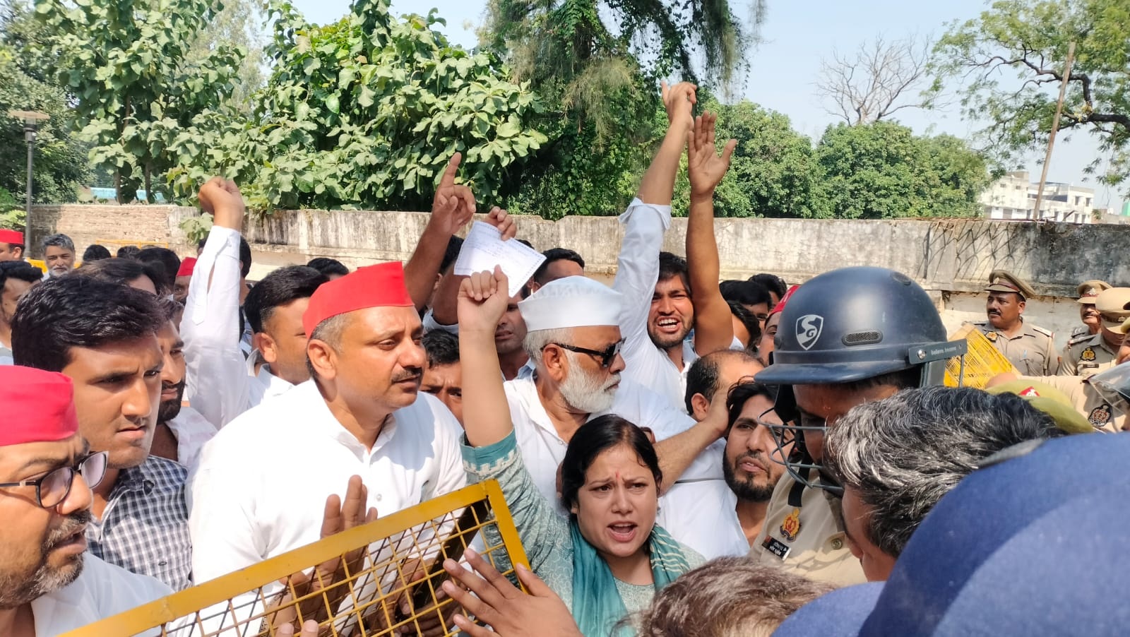 बता दें कि गन्ना समिति में डेलीगेट के चुनाव में गुरुवार को गन्ना समिति पर डायरेक्टर प्रत्याशियों को नामांकन कराना था। सपा नेताओं और भारतीय किसान का आरोप है कि सपा और भारतीय किसान यूनियन डायरेक्टर प्रत्याश नामांकन कराने पहुंचे तो प्रशासन ने उन्हें गन्ना समिति में नहीं जाने दिया। पुलिस ने गेट पर ही उन्हें रोक दिया। जिलाध्यक्ष जयवीर यादव ने कहा कि सपा ने प्रतिनिधि चुनाव में बाजी मारी है। सपा के सर्वाधिक प्रतिनिधि हैं। प्रतिनिधि ही डायरेक्टर का चुनाव करते हैं। ऐसे में भाजपा को डर है कि चुनाव हुए तो सपा जीत जाएगी।