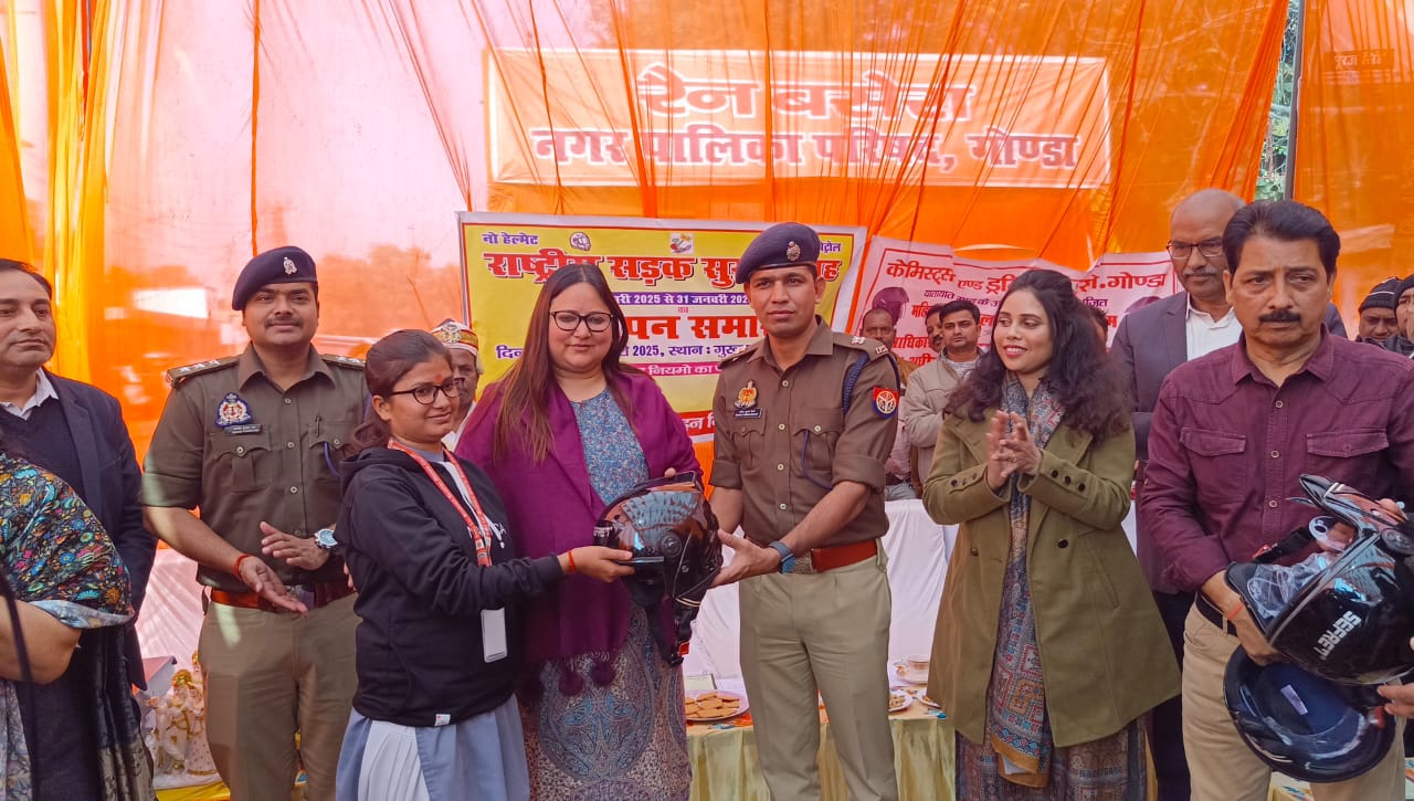 गोंडा: राष्ट्रीय सड़क सुरक्षा माह का समापन, डीएम ने छात्राओं को बांटा हेलमेट