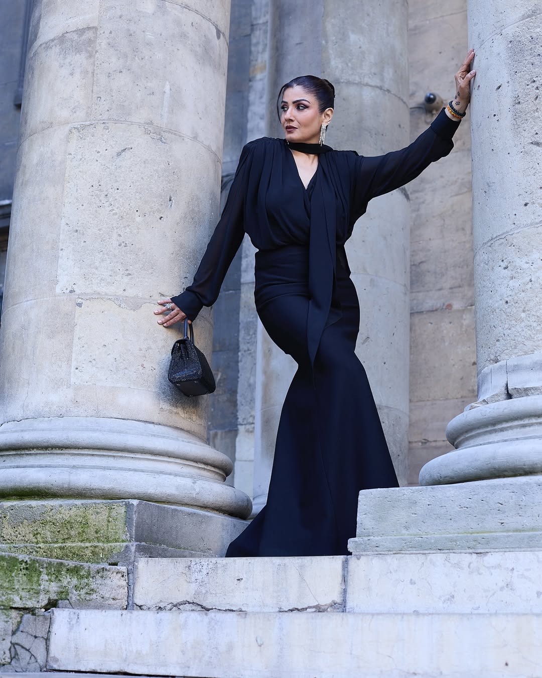 PHOTOS : पेरिस फैशन वीक में ऑल ब्लैक लुक में दिखीं रवीना टंडन, अपनी ओर खींचा लोगों का ध्यान
