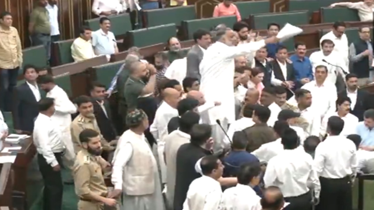 विधानसभा अध्यक्ष अब्दुल रहीम राथर ने सदस्यों से प्रश्नकाल चलने देने की अपील की, लेकिन नेशनल कांफ्रेंस, कांग्रेस, पीडीपी और कई निर्दलीय विधायक अध्यक्ष के आसन के समक्ष आ गए और ‘काला कानून वापस लो’ के नारे लगाए। हंगामे के बीच पीडीपी के विधायक वहीद पारा ने कहा कि वह सदन में एक प्रस्ताव लाना चाहते हैं।