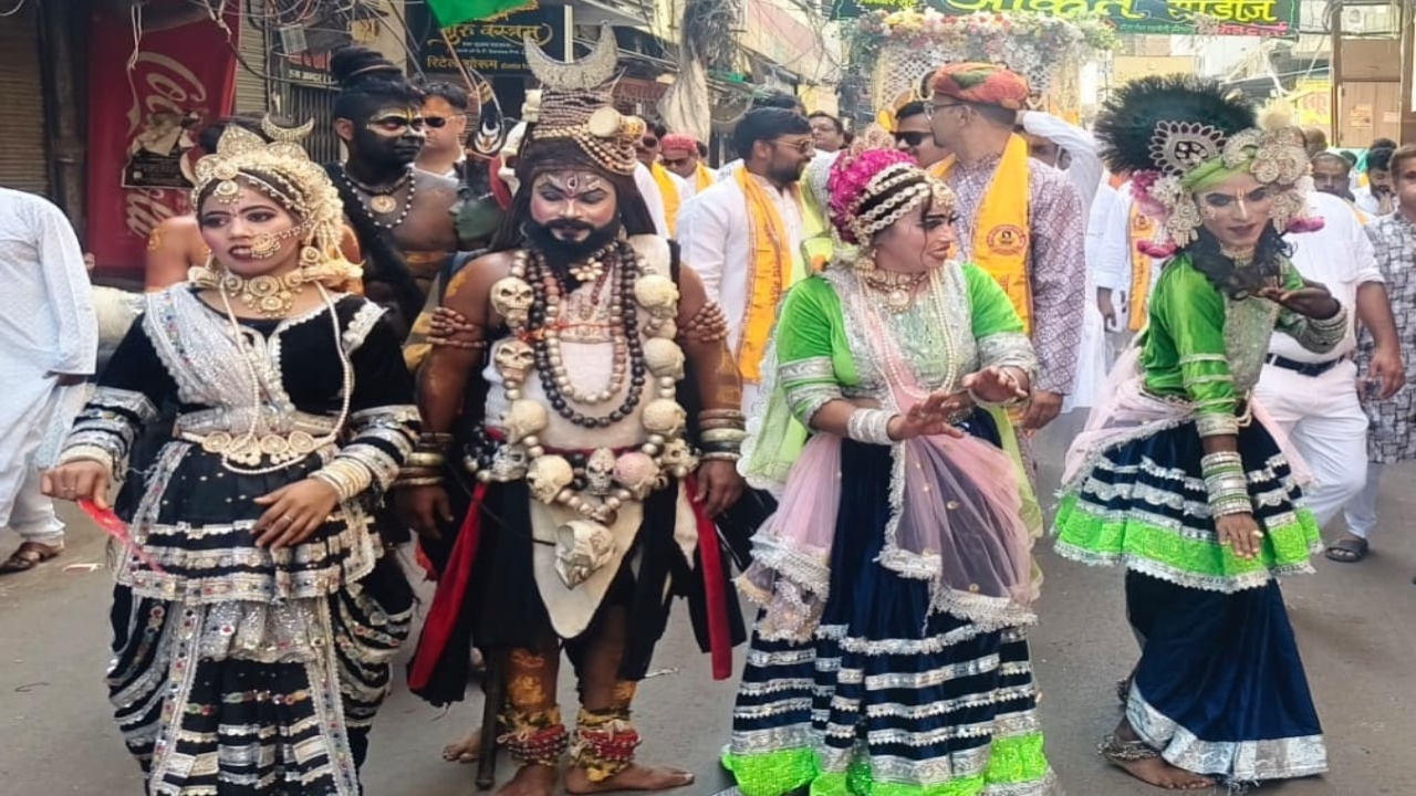 शोभायात्रा यात्रा माहेश्वरी धर्मशाला चावल मंडी से कमला टावर, सिरकी मोहाल, काहूकोठी, जनरलगंज, मनीराम बगिया, मेस्टन रोड़, टोपी बाजार ,चौक होते हुए धर्मशाला पहुंची। इस दौरान श्रद्धालु मेरा भोला है भंडारी करे नंदी की सवारी…, बाकेबिहारी रे कजरारे तो मोटे मोटे नैन…. आदि भजनों पर श्रद्धालुओं ने जमकर नृत्य किया। धर्मशाला में हवन पूजन किया गया और पदाधिकारियों को सम्मानित किया गया।