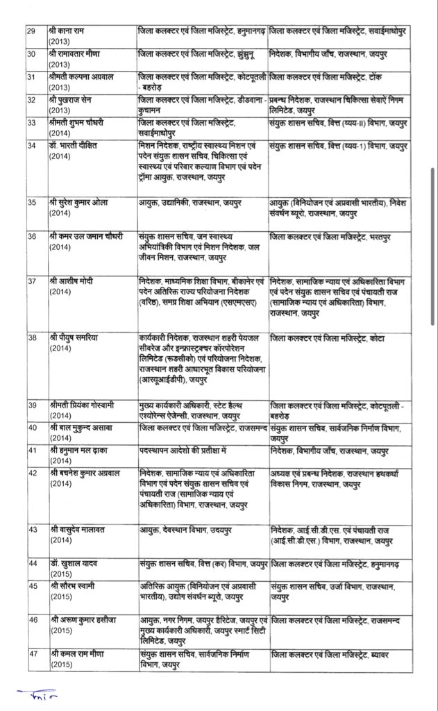 इस फेरबदल के तहत फलौदी, हनुमानगढ़, झुंझुनू, कोटपूतली, डीडवाना-कुचामन, सवाई माधोपुर, राजसमंद, टोंक, भरतपुर, कोटा और ब्यावर के जिलाधिकारी भी बदले गए हैं।