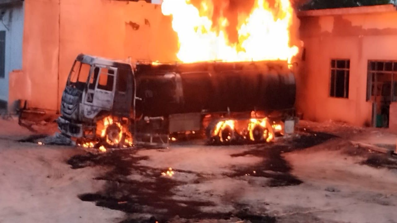 बाराबंकी : हाईवे पर धू-धू कर जला डीजल लदा टैंकर, खाक