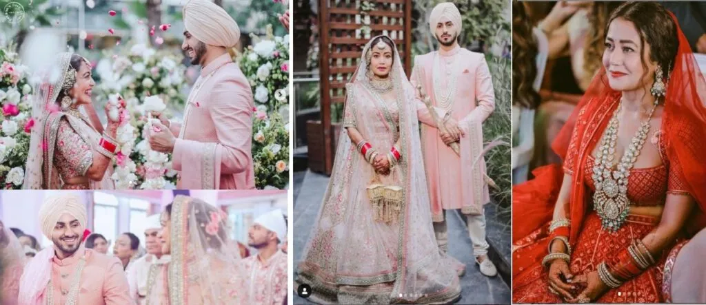 बॉलीवुड की मशहूर सिंगर नेहा कक्कड़ और पंजाबी सिंगर रोहनप्रीत सिंह की शादी साल 2020 की सबसे चर्चित शादियों में से एक रही। नेहा और रोहनप्रीत 24 अक्टूबर को शादी के बंधन में बंधे। नेहा कक्कड़ और रोहनप्रीत को ‘नेहू दा व्याह’ के सेट पर प्यार हुआ और फिर दोनों ने शादी का फैसला कर लिया। रोहन पंजाबी सिंगर हैं। शादी के बाद नेहा ने ब्राइडल लहंगे में फोटो इंस्टाग्राम पर पोस्ट की जिसे उनके फैंस ने खूब लाइक किया और तस्वीर सोशल मीडिया पर वायरल हो गई।