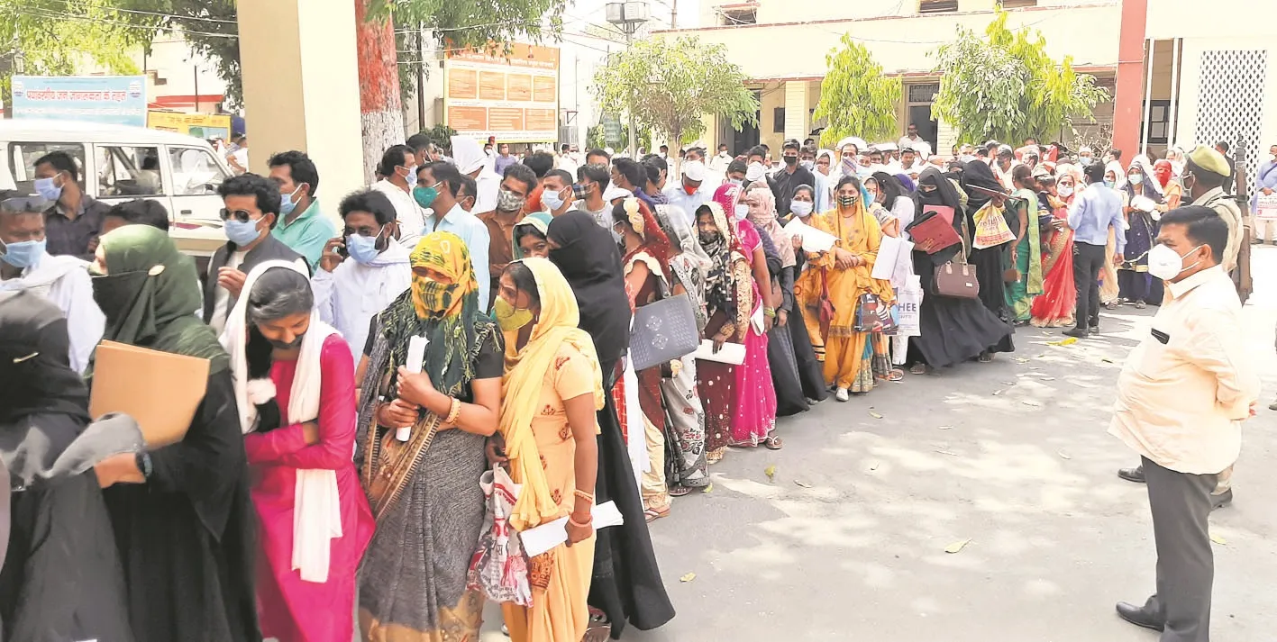 नामांकन प्रक्रिया के पहले प्रत्याशी व उनके समर्थकों ने कोविड के नियमों की खूब धज्जियां उड़ाई। कलेक्ट्रेट से लेकर ब्लाक कार्यालय तक नामांकन कराने पहुंचे प्रत्याशियों ने दो गज की दूरी का जरा भी ध्यान नहीं रखा। इतना ही नहीं ज्यादातर लोगों ने मास्क भी नहीं पहने हुए थे। मंगलवार की सुबह कलेट्रेट स्थित अपर जिलाधिकारी प्रशासन न्यायालय व सभी ब्लाकों में नामांकन प्रक्रिया शुरू हुई। सुबह में वहां पर तैनात पुलिस फोर्स ने कलेक्ट्रेट व ब्लाक में नामांकन कराने पहुंचे प्रत्याशियों को कोविड के नियमों के पालन के साथ ही अंदर प्रवेश कराया। लेकिन, जैसे-जैसे दिन बढ़ता गया और गर्मी बढ़ने लगी तो उन्होंने सख्ती कम कर दी। इसके बाद तो प्रत्याशियों ने भी कोरोना काल के नियमों को ताक पर रख दिया। लाइन में लगे प्रत्याशियों ने दो गज की दूरी का भी ध्यान नहीं रखा। अधिकतर प्रत्याशी गेट पर तैनात पुलिसकर्मी के डर से मास्क लगाकर अंदर दाखिल हो रहे थे। लेकिन, अंदर जाते ही मास्क उतार दे रहे थे। पहले अपना नामांकन कराने के चक्कर में प्रत्याशियों ने कोविड के नियमों की कोई परवाह नहीं की।
