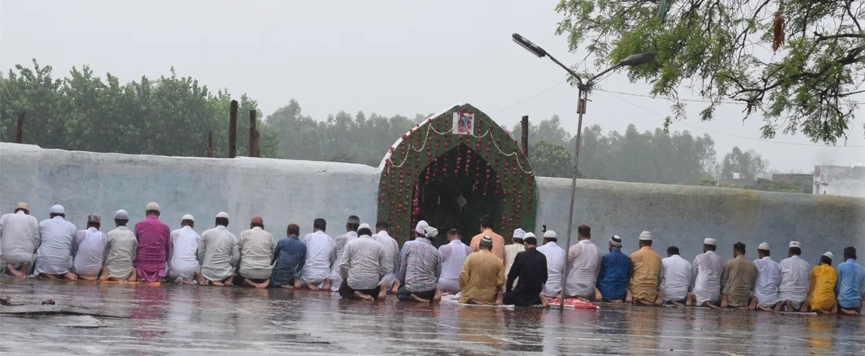 बरेली: बारिश के बीच अदा की गई ईद-उल-अजहा की नमाज