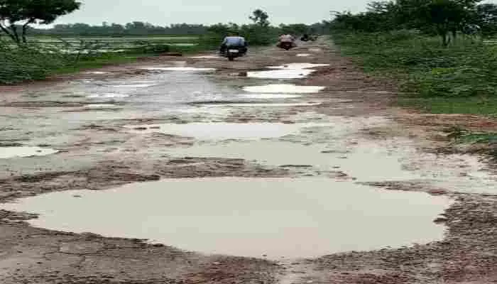 गड्ढे में तब्दील हुई सड़क