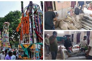 लखीमपुर खीरी: पाबंदी के बाद भी नहीं माने...HT लाइन पर गिरा 170 फीट ऊंचा ताजिया, टला हादसा