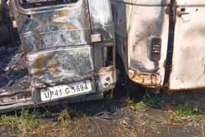 मुरादाबाद: स्वास्थ्य केंद्र में दो एंबुलेंस में अचानक लगी आग, जलकर राख