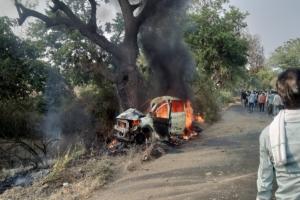 रामपुर: तेज रफ्तार डंपर ने बाइक को मारी टक्कर, दो की मौके पर मौत