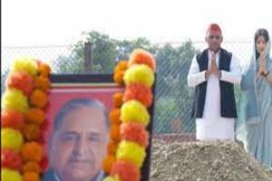 अखिलेश ने पिता मुलायम सिंह की समाधि पर टेका माथा, कहा- यह जीत नेताजी के आशीर्वाद और आदर्श की है