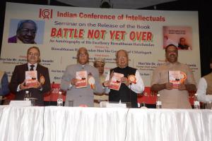 नई दिल्ली। छत्तीसगढ़ के राज्यपाल विश्वभूषण हरिचंदन द्वारा लिखित आत्मकथा ‘बैटल नॉट यटओवर’ का रविवार को विमोचन किया गया। इंडियन कॉन्फ्रेंस आफ इंटेलेक्चुअल की ओर से यहां आयोजित सेमिनार में राष्ट्रीय विधि आयोग के अध्यक्ष ऋतुराज अवस्थी और उच्चतम न्यायालय...