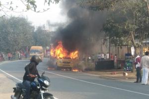 फतेहपुर में बच्चों को ले जा रही स्कूली वैन में लगी आग...मची चीख-पुकार; कूदकर बचाई जान