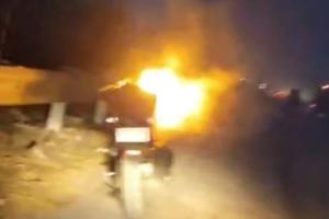 रामपुर: हाईवे पर चलती बाइक बनी आग का गोला, मचा हड़कंप
