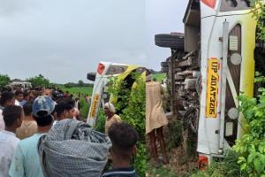 बहराइच: दिल्ली से आ रही सवारियों से भरी बस अनियंत्रित होकर पलटी, सात लोग घायल