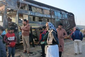 संभल: ट्रैक्टर-ट्रॉली से बचाने के प्रयास में रेलिंग से टकराई बस, 12 यात्री घायल