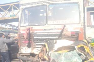 आगरा में भीषण हादसा : कंटेनर और ट्रक की टक्कर में चार लोगों की मौत