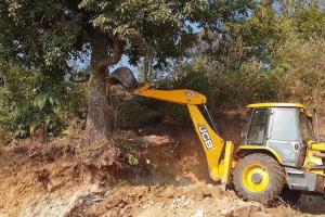 गरमपानी: बगैर अनुमति चला दी जेसीबी मशीन, हरे भरे पेड़ भी उखाड़ डाले