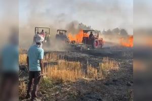 लखीमपुर खीरी : पराली जलाते समय भड़की आग से 13 बीघा गन्ने की फसल जली