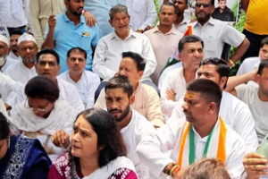 हरिद्वार: युवक की मौत के प्रकरण को लेकर रोशनाबाद में एसएसपी ऑफिस के बाहर धरने पर बैठे कांग्रेस कार्यकर्ता
