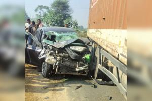 कासगंज: ट्रक ने कार को मारी जोरदार टक्कर, हादसे में चार लोग घायल