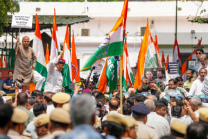 नई दिल्ली। कांग्रेस के नेताओं और कार्यकर्ताओं ने 'नेशनल हेराल्ड' मामले में प्रवर्तन निदेशालय द्वारा पार्टी के शीर्ष नेताओं सोनिया गांधी और राहुल गांधी के खिलाफ आरोपपत्र दाखिल किए जाने के विरोध में बुधवार को यहां प्रदर्शन किया और केंद्र...