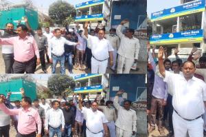 बहराइच: निजीकरण के विरोध में प्राइवेट बैंक के कर्मचारियों ने किया प्रदर्शन, करोड़ों का टर्न ओवर होगा बाधित