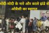 गुजरात में सूरत के रुद्रपुरा क्षेत्र में AIMIM (All India Majlis-e-Ittehadul Muslimeen) चीफ असदुद्दीन ओवैसी द्वारा संबोधित एक जनसभा में कुछ युवाओं ने मोदी-मोदी के नारे लगाए और काले झंडे दिखाए।